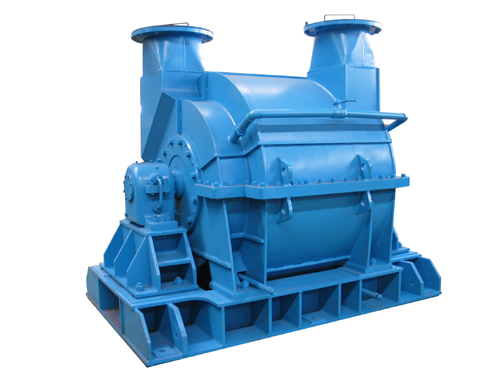 D型一般為多級高速、單吸入、雙支撐結(jié)構(gòu),采用電動機(jī)經(jīng)齒輪增速箱通過金屬疊片擾性聯(lián)軸器驅(qū)動,進(jìn) 風(fēng)口及出風(fēng)口方向均垂直向下。