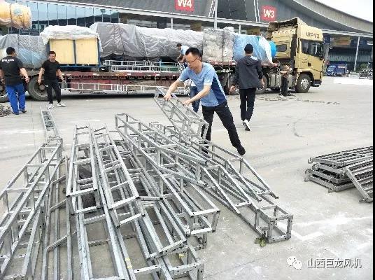 【山西巨龍風機有限公司】參展人員齊心協(xié)力,相互協(xié)作,配合有佳,在短短15分鐘內卸車以及其他相關事宜全部完成。