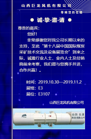 【山西巨龍風(fēng)機(jī)有限公司】誠邀您蒞臨北京”第十八屆中國國際煤炭采礦技術(shù)交流及設(shè)備展覽會(huì)”參觀指導(dǎo)!