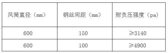 四、風(fēng)筒耐負壓性能 風(fēng)筒進行耐負壓試驗時,其值應(yīng)符合下表: