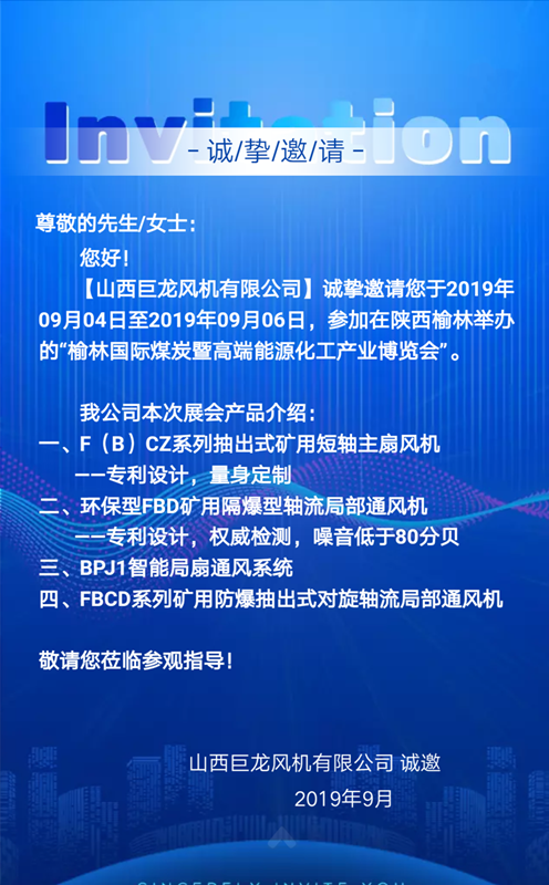 【山西巨龍風(fēng)機(jī)有限公司】邀您參加陜西榆林國際煤博會