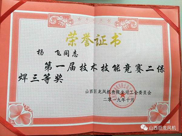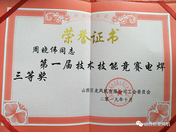 10月18日下午16:30分,公司在生產(chǎn)部門(mén)口召開(kāi)了“巨龍風(fēng)機(jī)第一屆技術(shù)技能競(jìng)賽表彰總結(jié)大會(huì)”。向榮獲【山西巨龍風(fēng)機(jī)有限公司】“第一屆技術(shù)技能競(jìng)賽”的員工頒發(fā)了獎(jiǎng)金及證書(shū)。